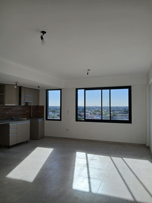 Monoambiente amplio y divisible a estrenar en excelente ubicacion con baño completo, Al ser un piso alto , la entrada de luz natural es un factor decisivo que hace que el espacio se sienta más grande.luminoso, con terraza, amplio sum con parrilla